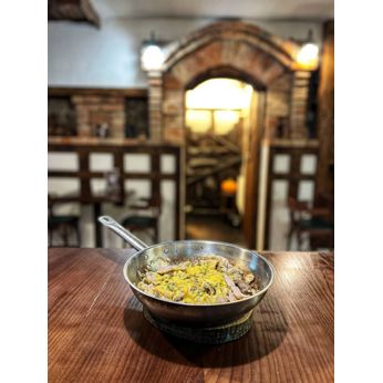 Соковита качина грудка у вишневому соусі з ніжним картопляно-морквяним пюре — гармонія смаку в кожному шматочку.